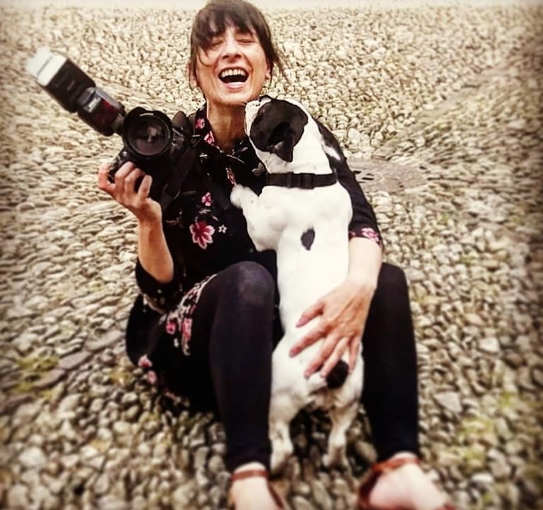 Estaba haciendo un reportaje de Comunión en Hondarribi y yo que soy muy perruna, le hice unas caricias a un perrito que se me acercó, le debí de gustar tanto que cada vez que me agachaba para hacer una toma, venía de lejos corriendo y me comía a lametazos jajaja.
